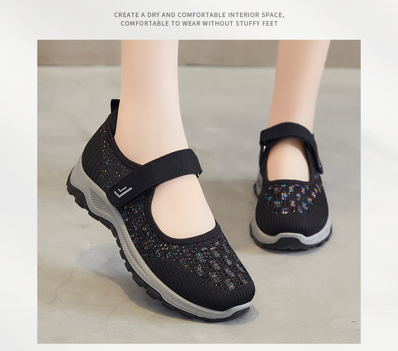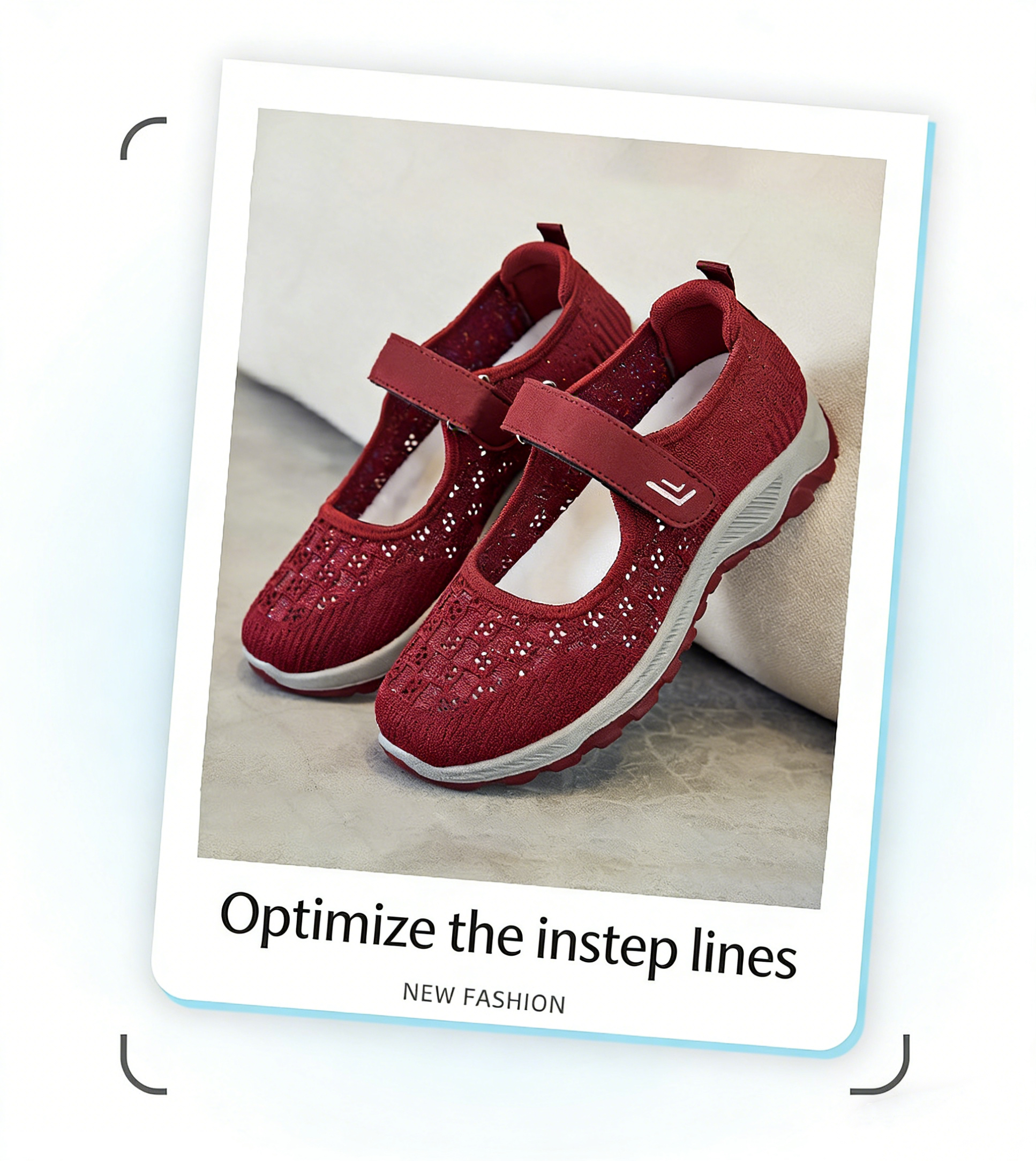 Women's Mary Jane Walking Shoes – Breathable Mesh, Adjustable Strap, Non-Slip Sole for All-Day Comfort & Pain-Free Steps
