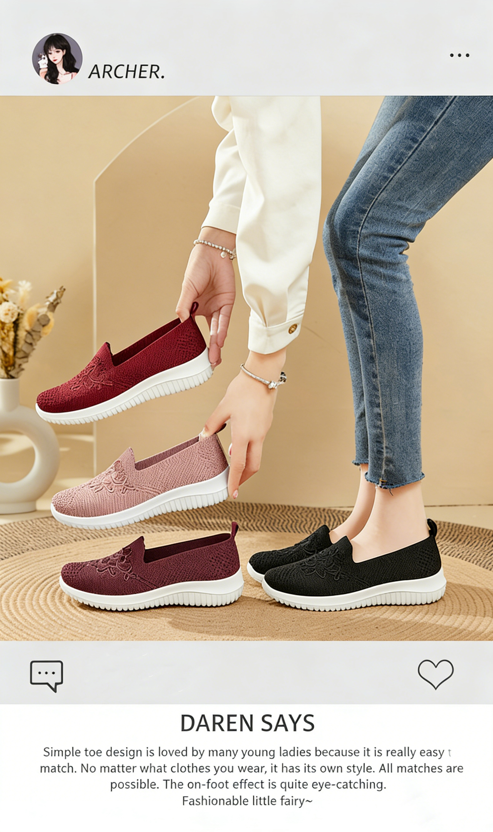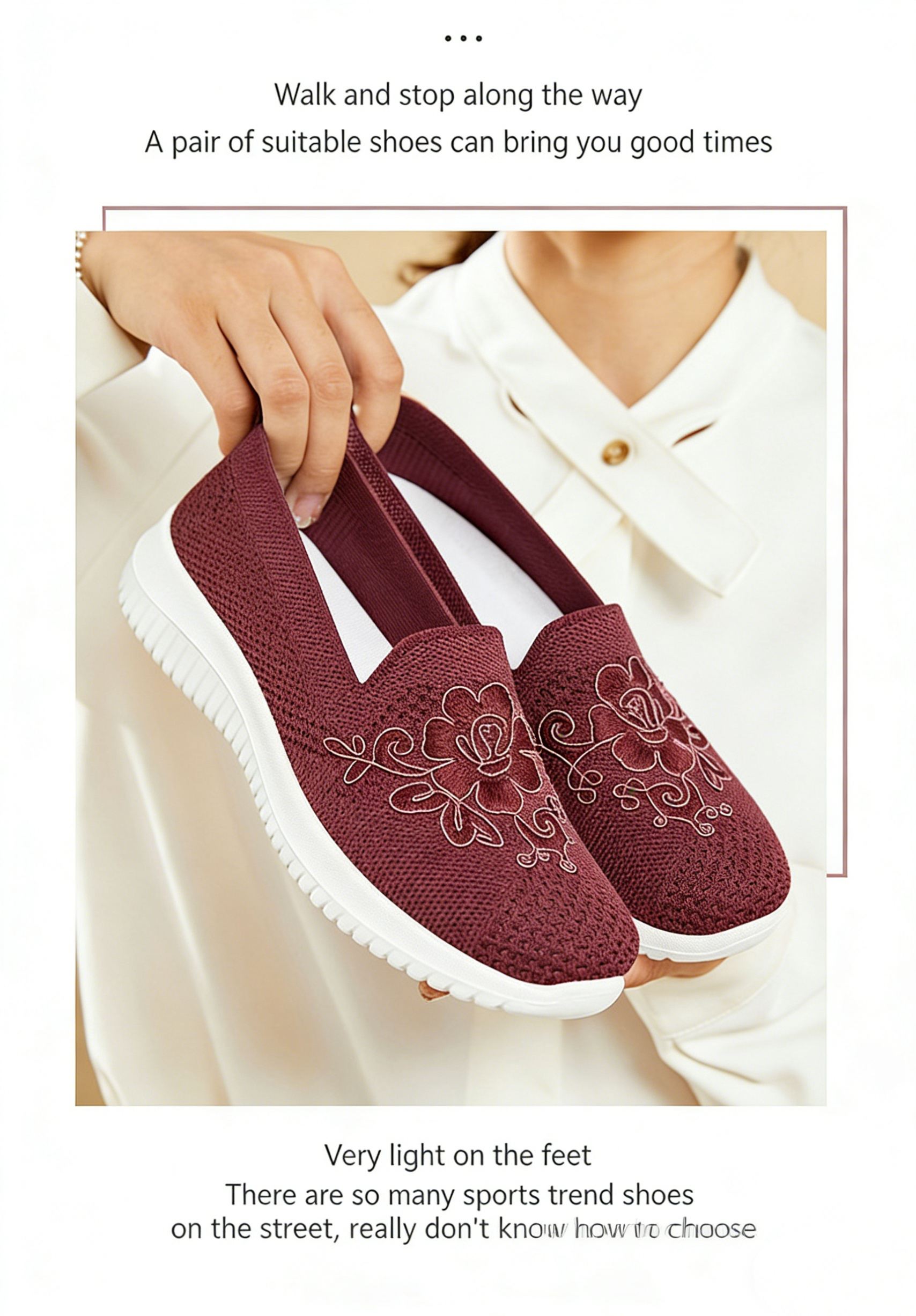 The shoes are easy to put on and take off with their laceless design. This model is light, comfortable