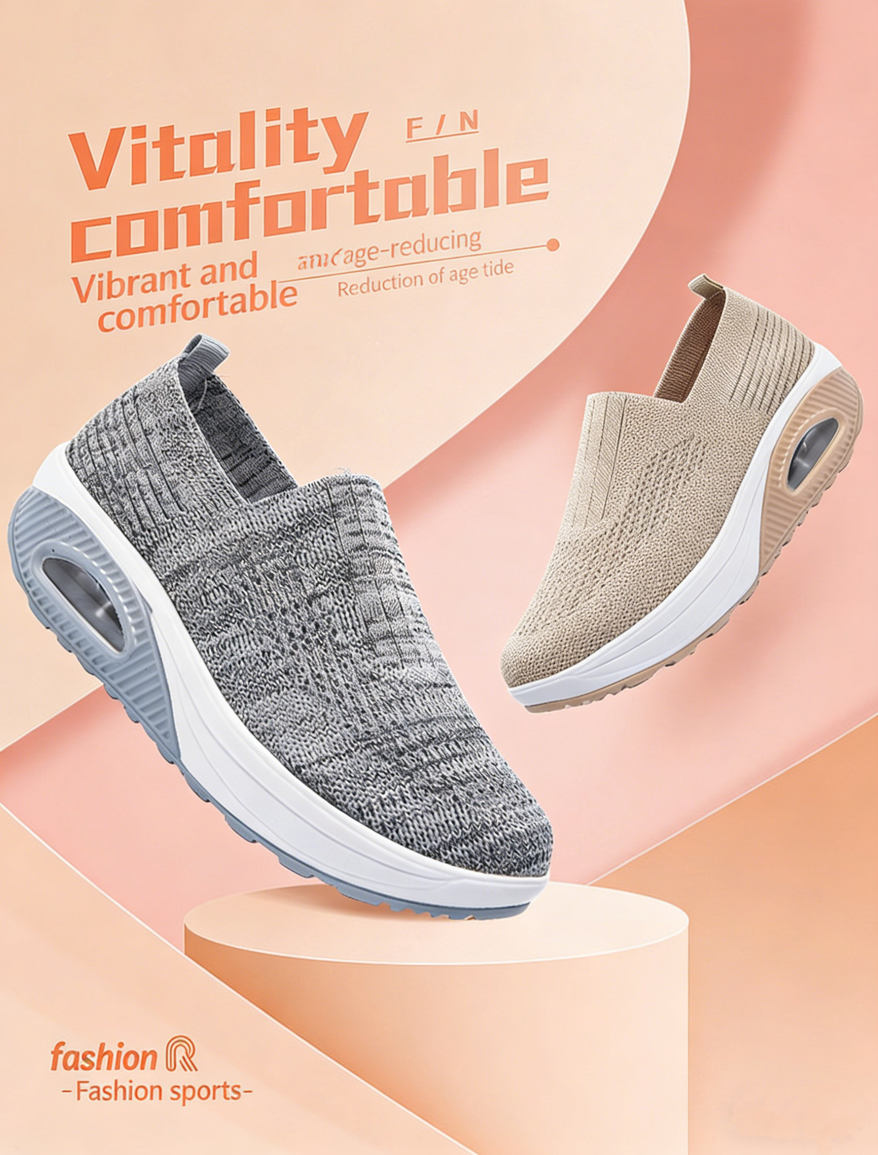 Slip-On Walking Shoes for Women – Breathable Mesh, Air Cushion Sole & Non-Slip Grip to Alleviate Foot Fatigue